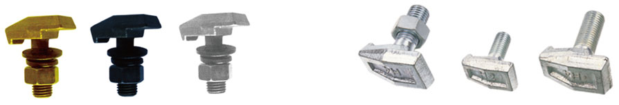 Note: T type forged clips are made exactly according to customers' design, which are suitable for T45/A to T140 Rail etc. Each full set of T type clips include four parts: T Bolt, Nut, Plain Washer and Lock Washer, and its finish options include plain (self colored), galvanized or zinc plated. Product threading can be offered in UNC, UNF or metric.